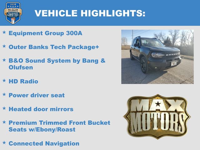 Certified. Shadow Black 2025 Ford Bronco Sport Outer Banks CARFAX One-Owner. Clean CARFAX. 25/30 City/Highway MPG