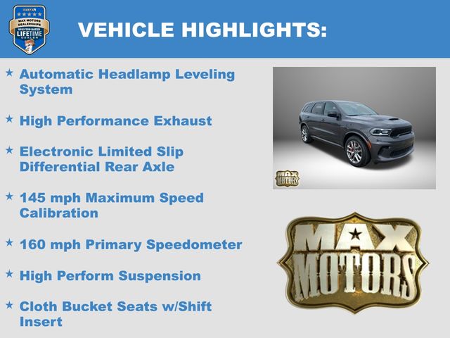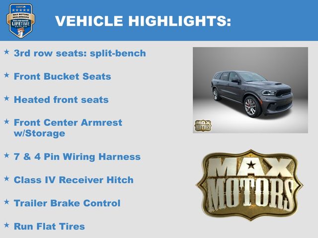 AWD, 145 mph Maximum Speed Calibration, 160 mph Primary Speedometer, 3rd row seats: split-bench, 7 & 4 Pin Wiring Harness, Active Noise Control System, Adaptive Damping, Apple CarPlay/Android Auto, Automatic Headlamp Leveling System, Blind Spot w/Trailer Detection, Class IV Receiver Hitch, Cloth Bucket Seats w/Shift Insert, Electronic Limited Slip Differential Rear Axle, Front Bucket Seats, Front Center Armrest w/Storage, Heated front seats, Heated steering wheel, High Perform Suspension, High Performance Exhaust, Illuminated entry, LED Auxiliary Low Beam & Turn Signal, Navigation system: TomTom, Performance Tuned Steering, Power driver seat, Quadra-Trac Active-on-Demand 4WD, Quick Order Package 22S R/T, Radio: Uconnect 5 Nav w/10.1" Display, Rear seat center armrest, Run Flat Tires, Sport/Track/Tow/Snow Drive Modes, Trailer Brake Control, Upper/Lower Body Color Rear Fascia.