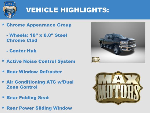 2 Way Rear Headrest Seat, 4 Way Front Headrests, 40/20/40 Split Bench Seat, Active Noise Control System, Air Conditioning ATC w/Dual Zone Control, Auto Power-Folding Mirrors, Auto-Dimming Rear-View Mirror, Black Exterior Mirrors, Blind Spot & Cross Path Detection, Bright Front Bumper, Bright Rear Bumper, Carpet Floor Covering, Center Hub, Chrome Appearance Group, Chrome Grille Surround, Chrome Headlamp Bezels, Chrome Nostrils/MIC Black Grille, Cloth 40/20/40 Bench Seat, Convenience Group, CTR Stop Lamp w/Cargo View Camera, Electronically Controlled Throttle, Exterior Mirrors Courtesy Lamps, Exterior Mirrors w/Heating Element, Exterior Mirrors w/Supplemental Signals, Forward & Reverse Utility Lights, Front & Rear Floor Mats, Front Armrest w/Cupholders, LED Tail Lamps, Manual Adjust 4-Way Driver Seat, Manual Adjust 4-Way Front Passenger Seat, Manual Folding Exterior Mirrors, Manual Telescoping Mirrors, Matte Black Mesh w/Chrome Grille, Mirror Running Lights, Power Adjust Mirrors, Power Heat Fold Telescopic Mirrors, Power Heated Fold Telescopic Mirrors, Power Telescoping Mirrors, Power-Adjustable Convex Aux Mirrors, Quick Order Package 2HA Tradesman, Rear Folding Seat, Rear Power Sliding Window, Rear Window Defroster, Remote USB Port - Charge Only, Storage Tray, Surround View Camera System, Tinted Acoustic Windshield Glass, Towing Technology Group, Tradesman Level 2 Equipment Group, Trailer Reverse Guidance, Wheels: 18" x 8.0" Steel Chrome Clad.