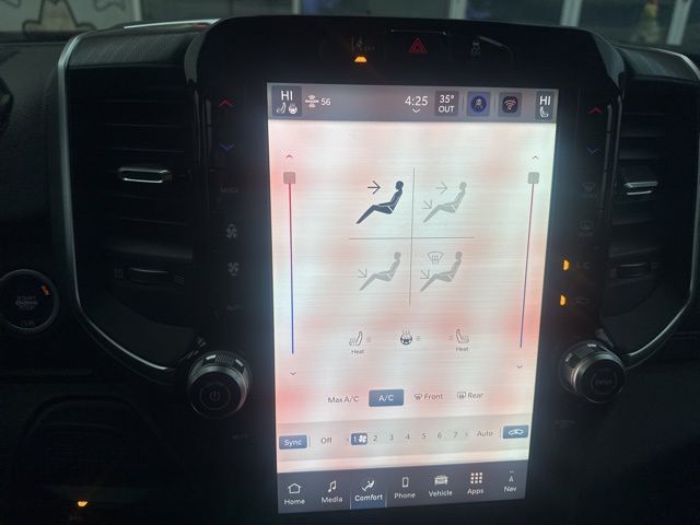 12" Touchscreen Display, 2 Way Rear Headrest Seat, 4 Way Front Headrests, 400W Inverter, 4G LTE Wi-Fi Hot Spot, Active Lane Management System, Adaptive Steering System, Apple CarPlay, Auto High Beam Headlamp Control, Auto Power-Folding Mirrors, Auto-Dimming Rear-View Mirror, Big Horn Level 2 Plus Equipment Group, Black Exterior Mirrors, Black Interior Accents, Body Color Grille Surround, Bucket Seats, Cluster 7.0" TFT Color Display, Cold Weather Group, Connectivity - US/Canada, Dampened Tailgate, Disassociated Touchscreen Display, Drowsy Driver Detection, Dual Glove Boxes, Dual Wireless Charging Pad, Emergency Vehicle Alert System (EVAS), Engine Block Heater, Exterior 115V AC Outlet, Exterior Mirrors Courtesy Lamps, Folding Flat Load Floor Storage, Footwell Courtesy Lamp, For Details Visit DriveUconnect.com, For More Info, Call 800-643-2112, Front Seat Back Map Pockets, Full Length Upgraded Floor Console, Glove Box Lamp, Google Android Auto, GPS Antenna Input, GPS Navigation, HD Radio, Heated Front Seats, Heated Steering Wheel, LED Bed Lighting, LED Tail Lamps, Locking Lower Glove Box, Luxury Steering Wheel, Manual Adjust 4-Way Front Passenger Seat, Mirror Running Lights, MOPAR Deployable Bed Step, MOPAR Winter Front Grille Cover, Off-Road Information Pages, Painted Front Bumper, Painted Rear Bumper, Power 2-Way Driver Lumbar Adjust, Power Adjust 8-Way Driver Seat, Power Adjust Mirrors, Power Adjustable Pedals, Power Heated Fold Telescopic Mirrors, Power Telescoping Mirrors, Power-Adjustable Convex Aux Mirrors, Premium Cloth Bucket Seats, Quick Order Package 24Z Big Horn, Rain Sensitive Windshield Wipers, Rear 60/40 Folding Seat, Rear Power Sliding Window, Red Tail Lamp Bezels, Remote Start System, Selectable Tire Fill Alert, SiriusXM Radio Service, Sport Appearance Package, Sport Decal, Steering Wheel Mounted Audio Controls, Surround View Camera System, Traffic Sign Recognition, Trailer Reverse Guidance, Trailer Tire Pressure Monitoring System, Trailer Tow Pages, Universal Garage Door Opener.