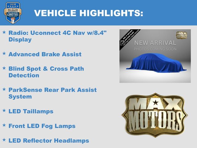1-Year SiriusXM Guardian Trial, 4G LTE Wi-Fi Hot Spot, 5-Year SiriusXM Traffic Service, 5-Year SiriusXM Travel Link Service, 8.4" Radio & Premium Audio Group, 8.4" Touchscreen Display, Advanced Brake Assist, Advanced Safety Group, Alloy wheels, Alpine Premium Audio System, Auto-Dimming Rear-View Mirror, Blind Spot & Cross Path Detection, Cold Weather Group, Daytime Running Lamps LED Accents, Emergency/Assistance Call, For Details, Visit DriveUconnect.com, Front LED Fog Lamps, Full Speed Forward Collision Warning Plus, GPS Navigation, HD Radio, Heated Front Seats, Heated Steering Wheel, LED Lighting Group, LED Reflector Headlamps, LED Taillamps, ParkSense Rear Park Assist System, Radio: Uconnect 4C Nav w/8.4" Display, Safety Group, SiriusXM Traffic Plus, SiriusXM Travel Link.