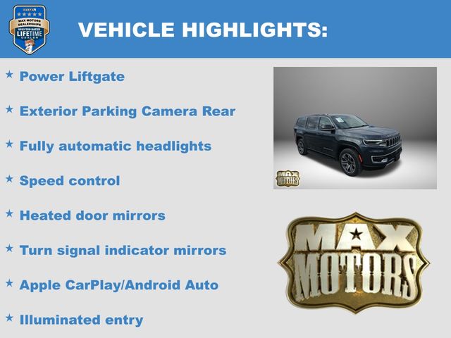 3rd row seats: bench, Adjustable pedals, Apple CarPlay/Android Auto, Automatic temperature control, Driver's Seat Mounted Armrest, Exterior Parking Camera Rear, Front Bucket Seats, Front dual zone A/C, Fully automatic headlights, Heated door mirrors, Heated front seats, Heated rear seats, Heated steering wheel, Illuminated entry, Memory seat, Pedal memory, Power Liftgate, Quick Order Package 25J, Remote keyless entry, Speed control, Steering wheel memory, Steering wheel mounted audio controls, Turn signal indicator mirrors, Variably intermittent wipers, Ventilated front seats, Wheels: 20" x 9.0" Premium 2 Aluminum.
